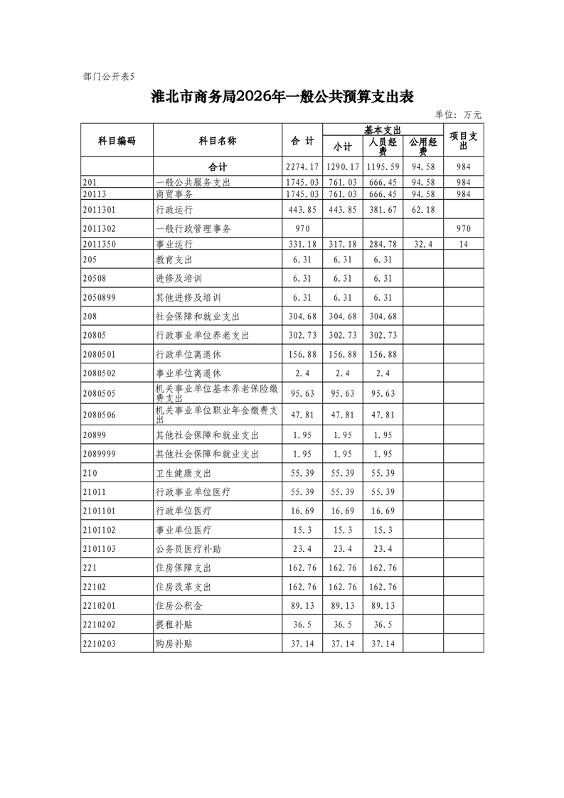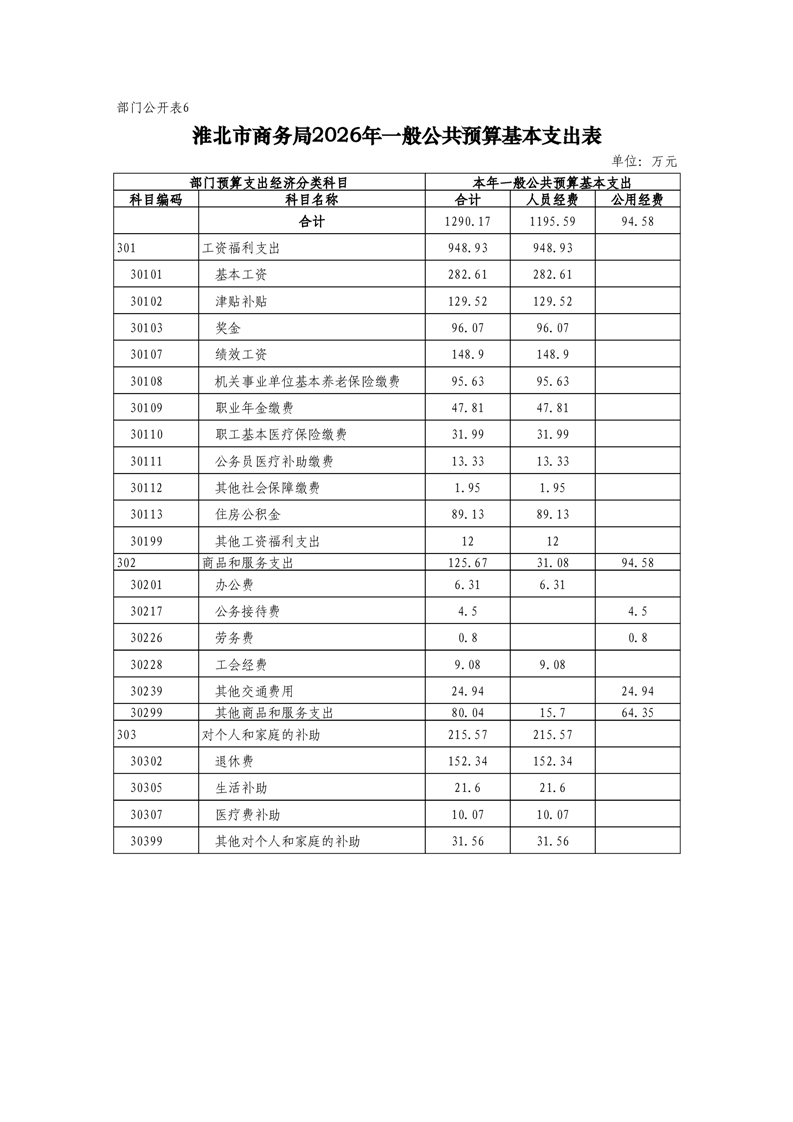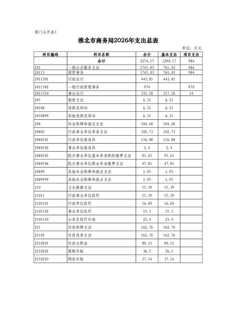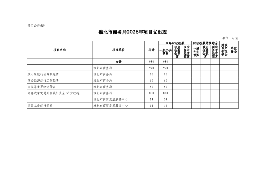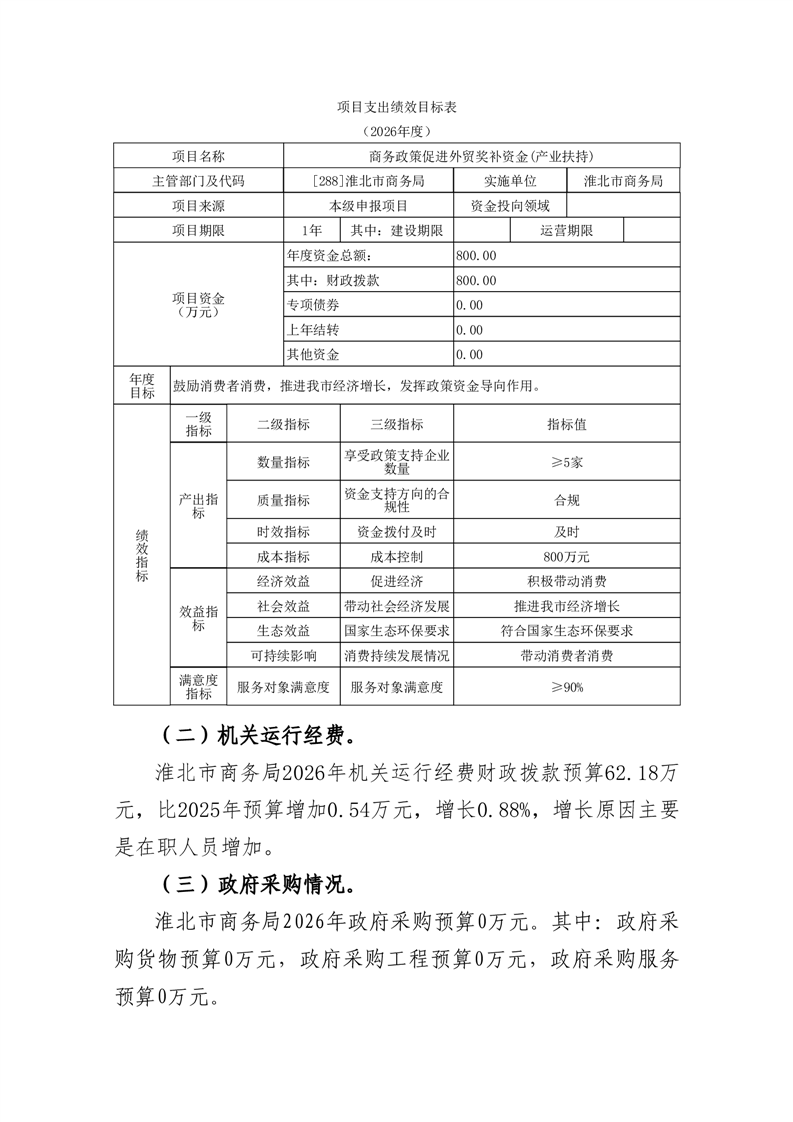 淮北市商务局2026年度部门预算 |